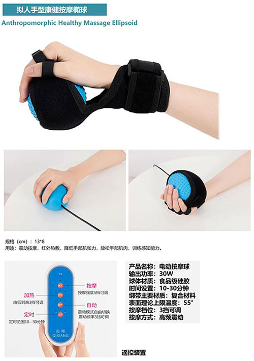 用途:震动按摩,红外热敷,降低手部肌张力,放松手部肌肉,训练感知能力。